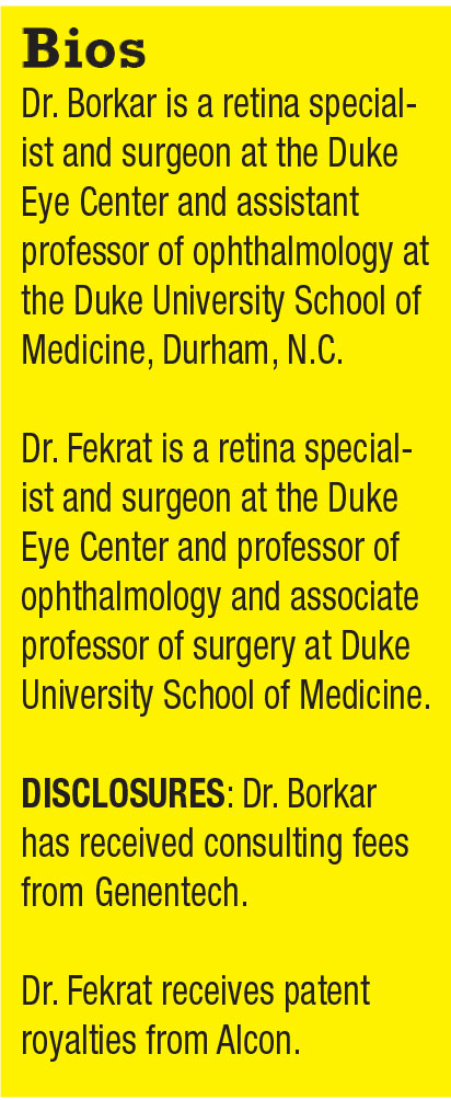 While initial studies of this technique were promising, further studies showed that even though up to one-third of eyes had resolution of macular edema and some visual improvement in some series,3,4 complications were not uncommon. They included localized retinal detachment at the site of the sheathotomy.3 In most cases, venous outflow didn’t improve and visual results were lackluster. Given the lack of reproducible substantial visual acuity gains, AV sheathotomy is rarely performed in 2020.