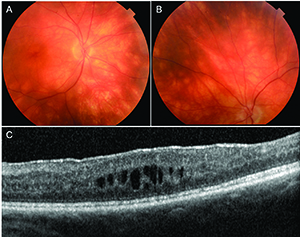 the macula OD (C) revealed cystic intraretinal fluid, most