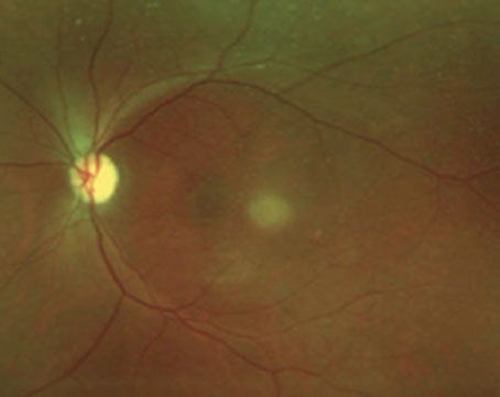 OCT imaging has made it possible to report pathognomonic features that include punctate hyperreflectivity in the choroid.